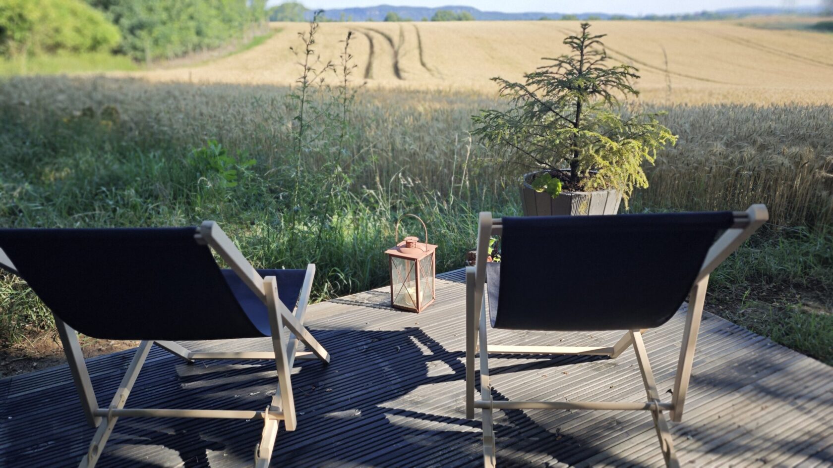V okolí maringotky je při západu slunce možné zahlédnout krásně nasvícenou zříceninu hradu Bezděz a při prozkoumání okolí, vás okouzlí pohled na Ještěd.